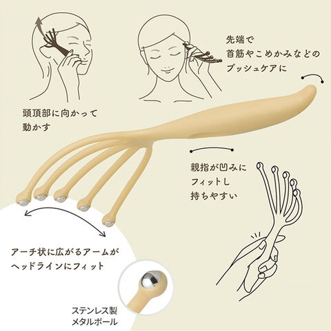 5本のアームと反対側の先端で、首筋やこめかみなどのプッシュケアに。