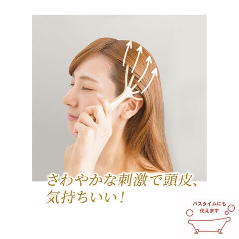 頭のラインに沿って頭皮をかき上げるように刺激して、血行を良くする頭皮ケアグッズ。