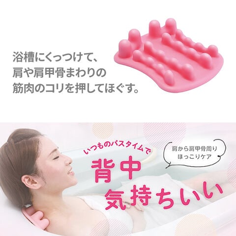 浴槽にくっつけて、入浴中に肩・肩甲骨周りを突起で刺激するツボ押しグッズ。
