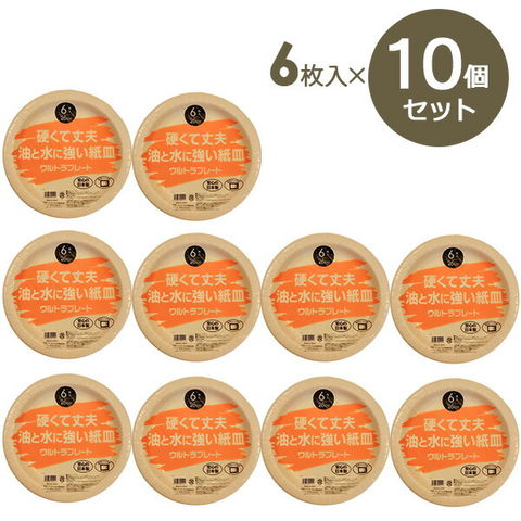 水と油に強い紙皿 ウルトラプレート。【6枚入×10個セット】