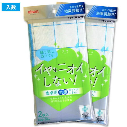 安全で清潔なバイオシル抗菌防臭加工を施し、吸水性に優れた綿100%の丈夫なふきん(2枚入)の【2袋セット】。