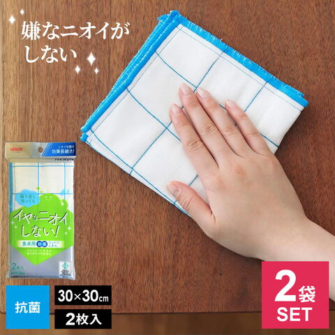 バイオシル コットンふきん(2枚入) 2袋セット | 食卓用ふきん 布巾 キッチン クロス 台拭き テーブル 作業台 吸水 速乾 抗菌 防臭 加工 コットン 綿100% 丈夫 フキン