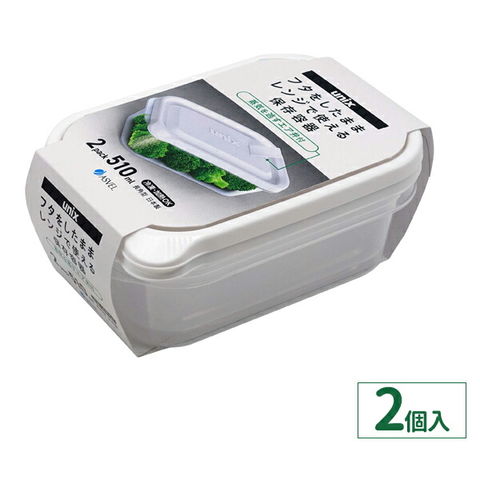 保存容器 ユニックス レンジ名人 長角M 510ml 2個入 3702 | プラスチック レンジ レンチン 冷凍OK 加熱OK 白 ホワイト フタをしたまま 大容量 作り置き 蒸気弁 エア弁