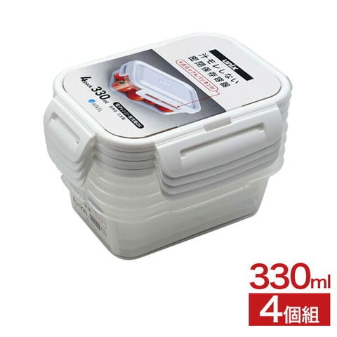 保存容器 密閉 ユニックス タイトロック 長角S 330ml ホワイト 4個入 3707 | 密閉容器 パッキン付き 電子レンジOK 食洗機OK 日本製 耐熱 耐冷 作り置き 食器洗い乾燥機 食品衛生法適合