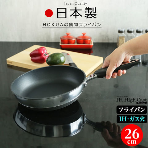 フライパン 日本製 IH対応 ハイキャストプレミアム 26cm | 鋳物 丈夫 テフロン 北陸アルミ 長持ち 料理 炒め物 おしゃれ