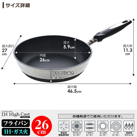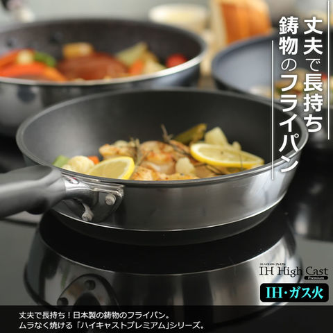 丈夫で長持ち!日本製の鋳物のフライパン。IHでもガス火でもOK、ムラなく焼ける「ハイキャストプレミアム」シリーズ。