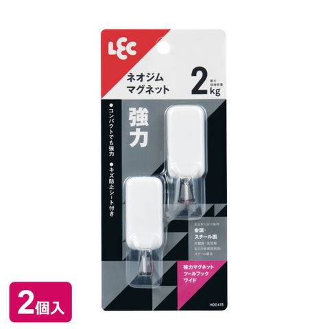 強力 マグネット ツールフック ワイド 2個入 H00415 | フック 磁石 強力 マグネット 吊り下げ 引っ掛け 浮かせる 収納 浴室 壁 冷蔵庫 洗濯機 キッチン 小物