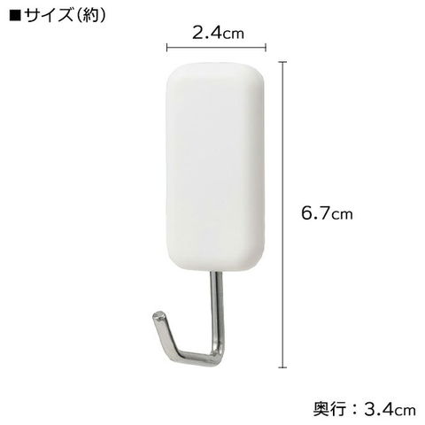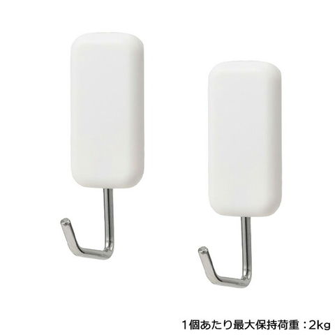 マグネットで冷蔵庫などの金属面に取り付けるフック2個入。