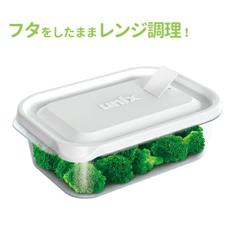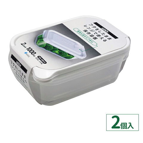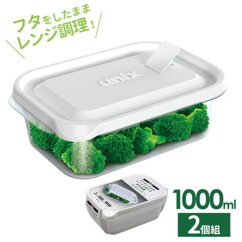 保存容器 ユニックス レンジ名人 長角LL 1000ml 2個入 3704 | プラスチック レンジ レンチン 冷凍OK 加熱OK 白 ホワイト フタをしたまま 大容量 作り置き 蒸気弁 エア弁
