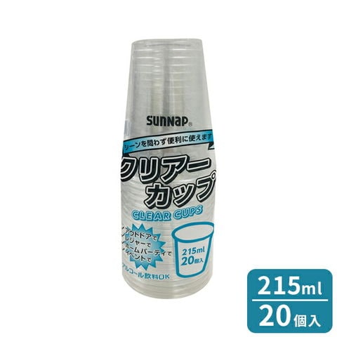 プラスチックカップ クリアーカップ 215ml 透明 20個入 C2120ZWH | 使い捨てコップ クリアカップ ペットクリアカップ 使い捨て食器 容器 PET レジャー おしゃれ ドリンク テイクアウト
