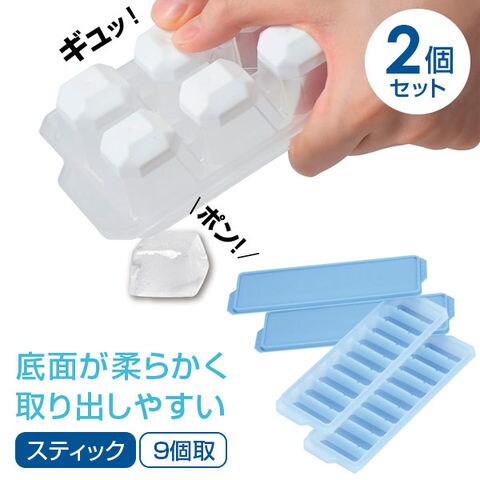 底面がやわらかく、氷が取り出しやすい製氷皿。【2個セット】