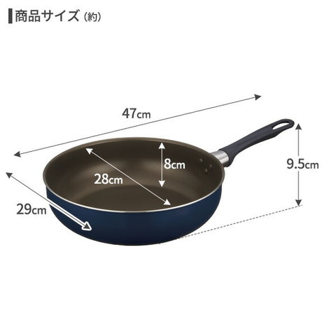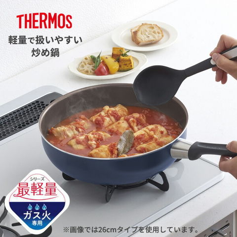 サーモス デュラブル 炒め鍋 28cm ネイビー KFI-028D | THERMOS 大型 深型 ガス火専用 軽量 深型フライパン 焦げ付きにくい 長持ち 煮込み料理 汁物 青 高耐久