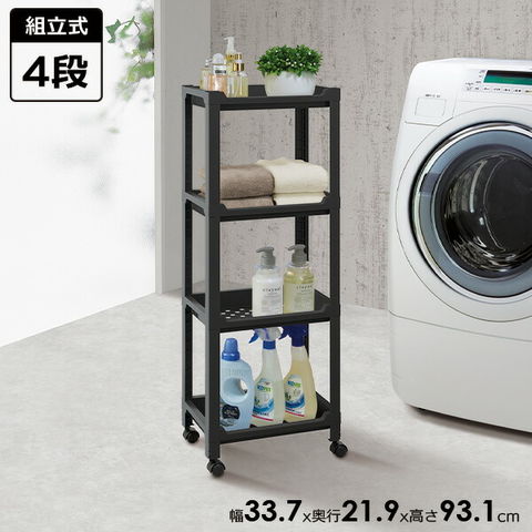 コネクトラック ミニ ブラック F-64201 | 収納ワゴン キャスター付 天板付き 組立式 工具不要 4段 日本製 キッチン ランドリー リビング 小物整理 おしゃれ シンプル