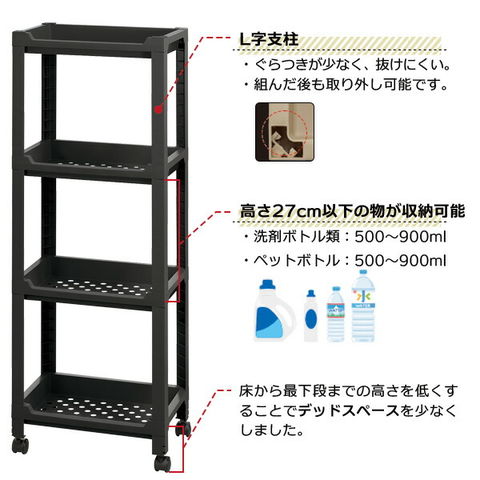 関連キーワード: 収納 隙間 ケース ワゴン 調味料 ペットボトル パントリー 食糧庫 キッチン 台所 洗面所 脱衣所 洗剤 ランドリールーム 保管 保存 ストック ストッカー コンパクト すっきり スッキリ 片付く 有効活用 デッドスペース 小物 食料品 缶詰 瓶詰 食器棚 冷蔵庫 シンク横 リビング 幅33.7 奥行21.9 高さ93.1 cm センチ 日本製 プラスチック製 キャスター付き 工具不要 簡単組み立て 天板 storage case stocker keep thin gap wagon 4962191017402