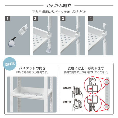 | 材質 | キャップ・支柱・バスケット・キャスターホルダー・キャスター/ポリプロピレン キャスター軸心/鉄 |