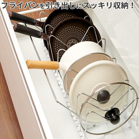 かさばりがちなフライパン・鍋・フタをスッキリ収納できるフライパンスタンド。