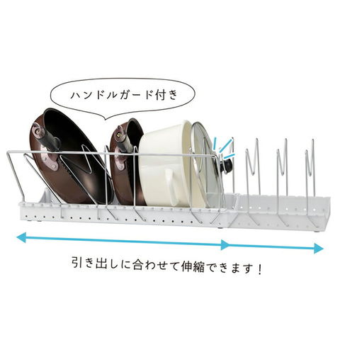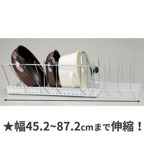 フライパンスタンド ソロエルスマート フライパン・鍋・ふたスタンド 2WAY ワイドタイプ ホワイト PFN-NL | シンク下収納 収納ラック フライパン立て 鍋蓋 キッチン 仕切り 縦置き 伸縮