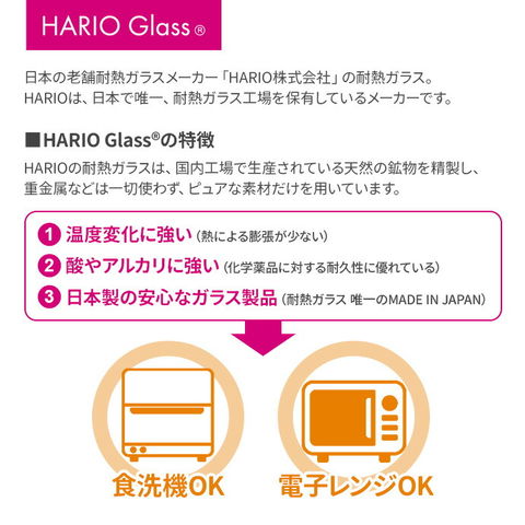 耐熱ガラス製だから、熱湯洗浄はもちろん、食器洗い乾燥機の使用もOK。