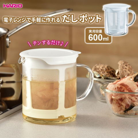 HARIO ハリオ だしポット 600ml ホワイト DP-600-W | 出汁 おだし 手軽 耐熱 ガラス レンジでチンするだけ レンチン 和食 洋食 中華 煎り酒 旨味 新鮮 離乳食 みそ汁 煮物