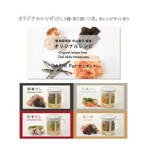 電子レンジで手軽にだしがとれる、耐熱ガラス製の「だしポット」。オリジナルレシピ付き。