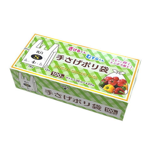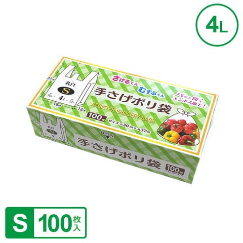 手さげポリ袋 (S)30号 100枚入 UN-3010 | ポリ袋 ゴミ袋 持ち手付き 箱入り 乳白色 エンボス加工 手提げ付き レジ袋 消耗品 4L 30×37cm