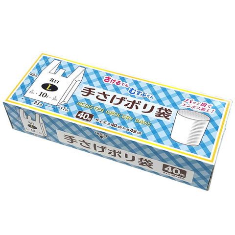 手さげポリ袋 (L)40号 40枚入 UN-4040 | ポリ袋 ゴミ袋 持ち手付き 箱入り 乳白色 エンボス加工 手提げ付き レジ袋 消耗品 10L 40×49cm