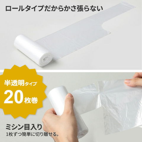 【10個セット】1ロールに20枚の手さげ袋がつながってコンパクトに!