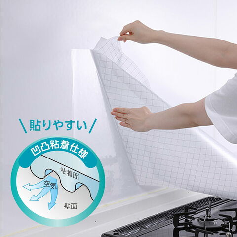 油はね 汚れ防止 はがせる3層タイプ 壁面シート 透明 1枚入 2853 | キッチン 壁面 コンロ周り シート 油はね ベタつき 料理 揚げ物 炒め物 貼りやすい 透明 馴染む 台所 掃除 新居 新生活 1人暮らし