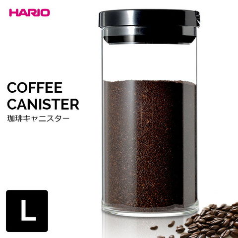 HARIO ハリオ 珈琲キャニスター L ブラック MCNR-300-B | 保存容器 コーヒー 粉 生豆 耐熱 ガラス 300g用 1L 茶葉 乾物 コーンフレーク おしゃれ