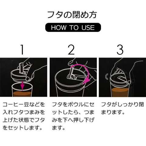 フタつまみを上げた状態でガラスボールにセットしたら、つまみを下に下げてください。
