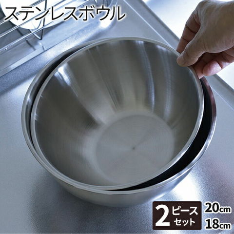 ボウル 調理がはかどるステンレスボウル 2ピース ST-2 | ミキシングボウル キッチンボウル 調理器具 目盛付き 目盛り付き 混ぜやすい スタッキング 軽量
