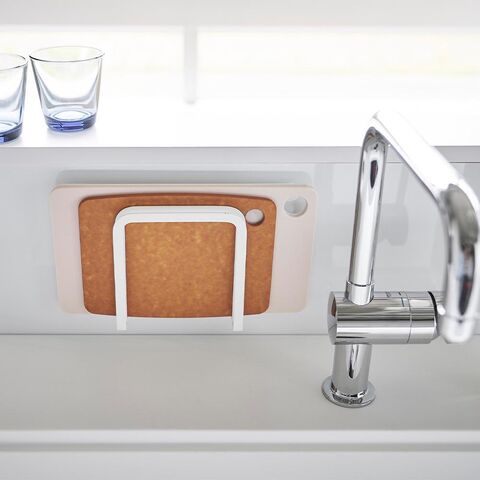 まな板を浮かせて収納することで、キッチンスペースを圧迫せず広く使えます。