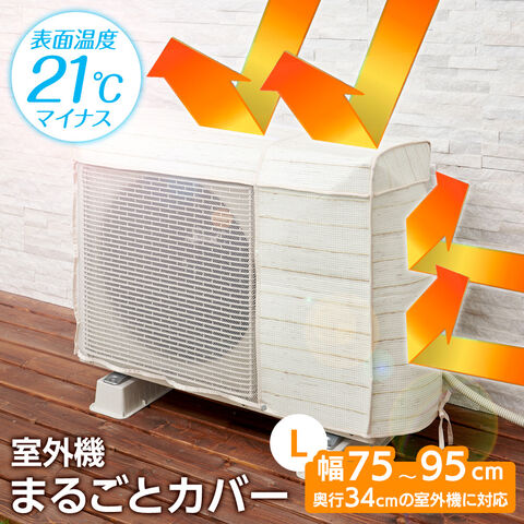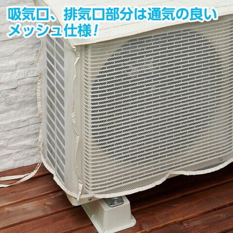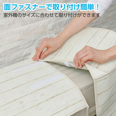 エアコン室外機用 まるごとカバー Lサイズ HN-087 ホワイトウッド | 室外機カバー 大型 節電対策 エアコン 奥行34cm 日除け 暑さ 対策 面ファスナー取付 省エネ グッズ 冷房 効率 アップ メッシュ 幅75~95cm 電気代カット エコ