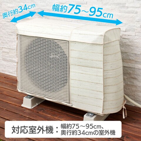 幅約75~95cm、奥行約34cmの室外機に対応しています。