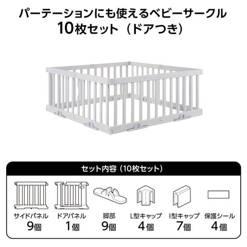 リッチェル パーテーションにも使えるベビーサークル(10枚セット) ドアつき ライトグレー | ベビーサークル ベビーガード パーテーション ベビー 赤ちゃん ベビーフェンス 囲み 安全 スペース確保 ドアつき 扉つき