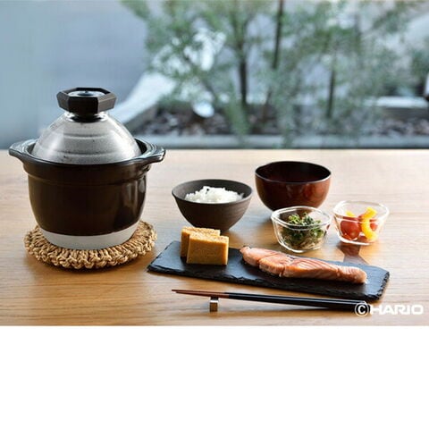 HARIO ハリオ フタがガラスのご飯釜 (1~2合用) GNR-150-B-W | 直火専用 炊飯鍋 1~2合用 炊飯 炊きあがりが見える 耐熱ガラスフタ 炊き上がりお知らせ 笛 耐熱陶器 ごはん釜 火加減 調節要らず フタが転がらない 炊きたてご飯 日本製