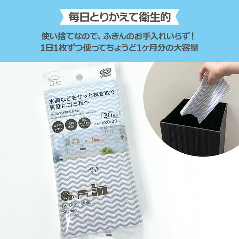 キッチンダスター 使い捨て不織布ふきん 30枚入 | テーブル 食卓 使い切り ダスター 布巾 クロス 台拭き 台所 食器拭き 水切り 雑巾 吸水力 高い タオル 衛生的 取り出しやすい