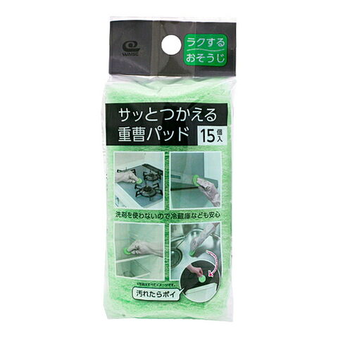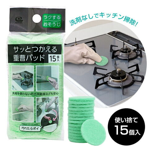 サッと使える重曹パッド 15個入 KZ-141 | 使い捨てスポンジ 固め ハード 重曹入り 洗剤不要 水だけ キッチン 掃除 油汚れ 焦げ付き コゲつき 冷蔵庫 水回り シンク ガスコンロ IH