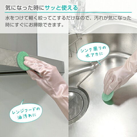 水だけでキレイ重曹を含有させたポリエステル不織布製。水を付けて軽く絞るだけで、洗浄効果を発揮。気になった時にサッと使うことができます。
