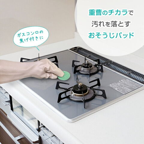 洗剤を使わずにキッチン周りのお掃除ができる、重曹入りお掃除パッド。