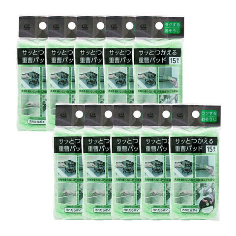 まとめ買い サッと使える重曹パッド 15個入 ×10袋セット KZ-141 | 使い捨てスポンジ 固め ハード 重曹入り 洗剤不要 水だけ キッチン 掃除 油汚れ 焦げ付き コゲつき 冷蔵庫 水回り シンク ガスコンロ IH