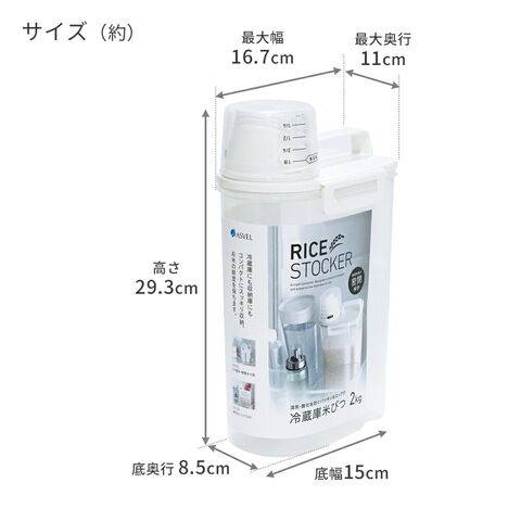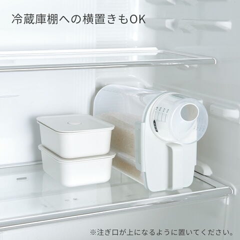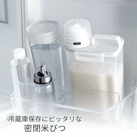 冷蔵庫 密閉米びつ 2kg ホワイト | 米 保存 密閉 パッキン付き 計量カップ付き ドアポケット 横置き 棚置き 米櫃 2キロ 保存容器 お米 ライスストッカー