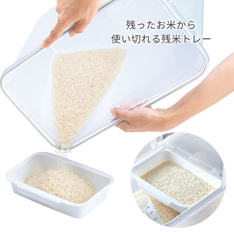 古いお米から使える!残米トレー新しく買ったお米を補充するとき、少し残った古いお米が混ざってしまう…というモヤモヤを解消する「残米トレー」付き。