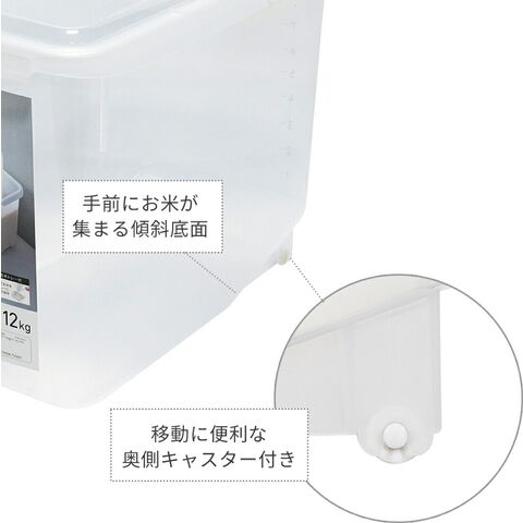 米櫃 密閉米びつ 12kg ナチュラル | 米 保存 密閉 パッキン付き 計量カップ付き コロ キャスター付き 保存容器 シンプル 約 10kg 12キロ お米 無洗米 ライスストッカー
