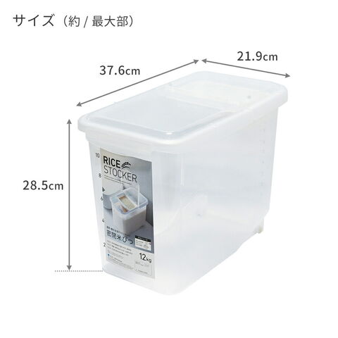 10kgのお米を余裕をもって補充できる12kgサイズです。