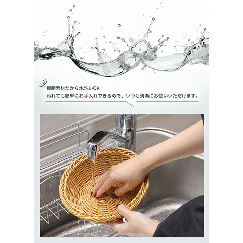 洗えるカゴ 洗えるバスケット ラウンドS ナチュラル 27878 | 収納 籠 かご 篭 食洗機可能 フェイクラタン インテリア 丸型 水洗い リビング ウォッシャブル 寝室 キッチン 片付け まるで本物の天然木 basket 小物入れ お菓子入れ