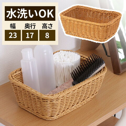 洗えるカゴ 洗えるバスケット スクエアM ナチュラル 27882 | 収納 籠 かご 篭 食洗機可能 フェイクラタン インテリア 長方形 水洗い リビング ウォッシャブル 寝室 キッチン 片付け まるで本物の天然木 basket 小物入れ