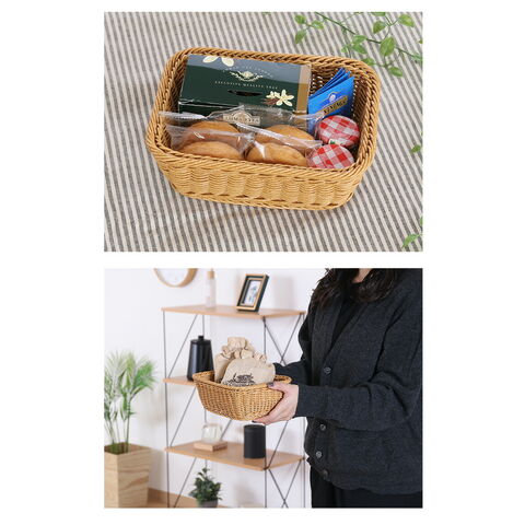 本物の天然木のような、リアルな見た目のスクエア型の編みかご。洗えるバスケット。
