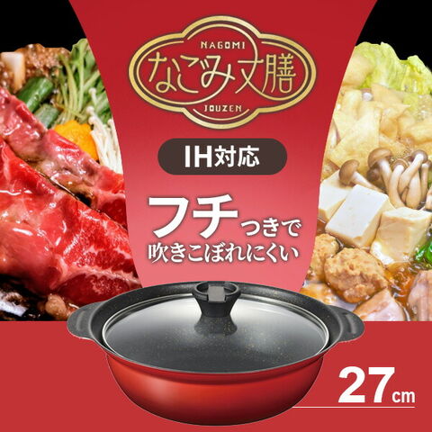 鍋 なごみ丈膳 IH対応 フチ付き 卓上鍋 27cm RB-3200 | 卓上 なべ アルミ製 軽い ふち付き 27cm IH対応 ガス火 5~6人用 両手鍋 軽量 フタ付き ふっ素樹脂加工 PFOAフリー こびりつきにくい ガラス蓋 9号サイズ