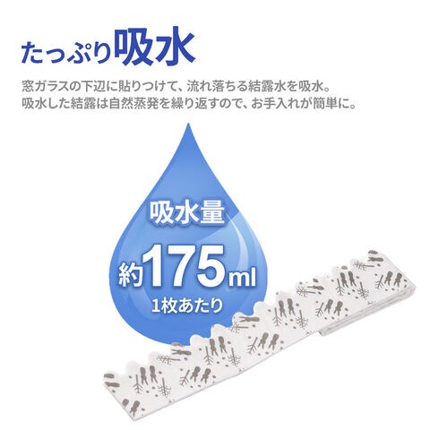 窓際の結露を吸水窓ガラスの下辺に貼りつけて、流れ落ちる結露水を吸水。吸水した結露は自然蒸発を繰り返すので、お手入れが簡単に。